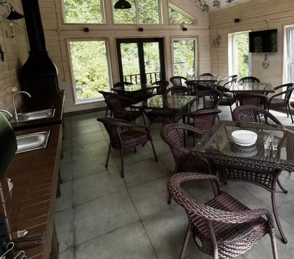 بيت الشواء عبارة عن منزل صغير مغلق مع طاولة-منجل في الوسط ومقاعد تقف حولها. في أي وقت من السنة سيكون مريحاً جداً لمجموعة صغيرة للجلوس وطهي الشواء.