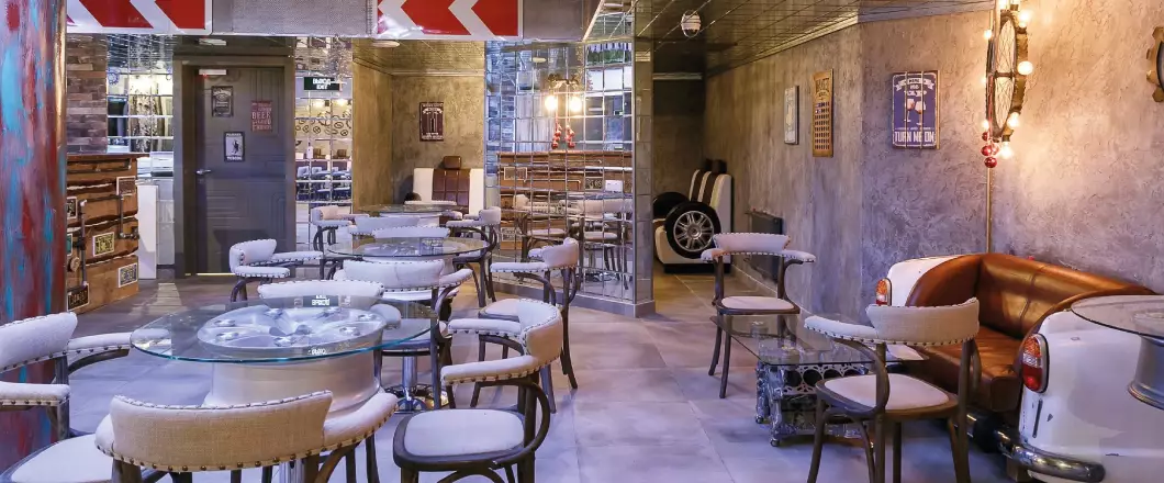 车库 "卡拉 OK 吧是一个音乐和欢乐永不落幕的地方! 舒适的氛围、高品质的音效和丰富的歌曲选择,让每位客人都感觉自己是真正的明星。在我们的卡拉 OK 吧,您不仅可以演唱自己最喜爱的歌曲,还可以与朋友们一起享用各种饮料和小吃。“车库 "是那些喜欢度过美好时光的人的理想去处! 卡拉 OK 吧位于主楼 1 层