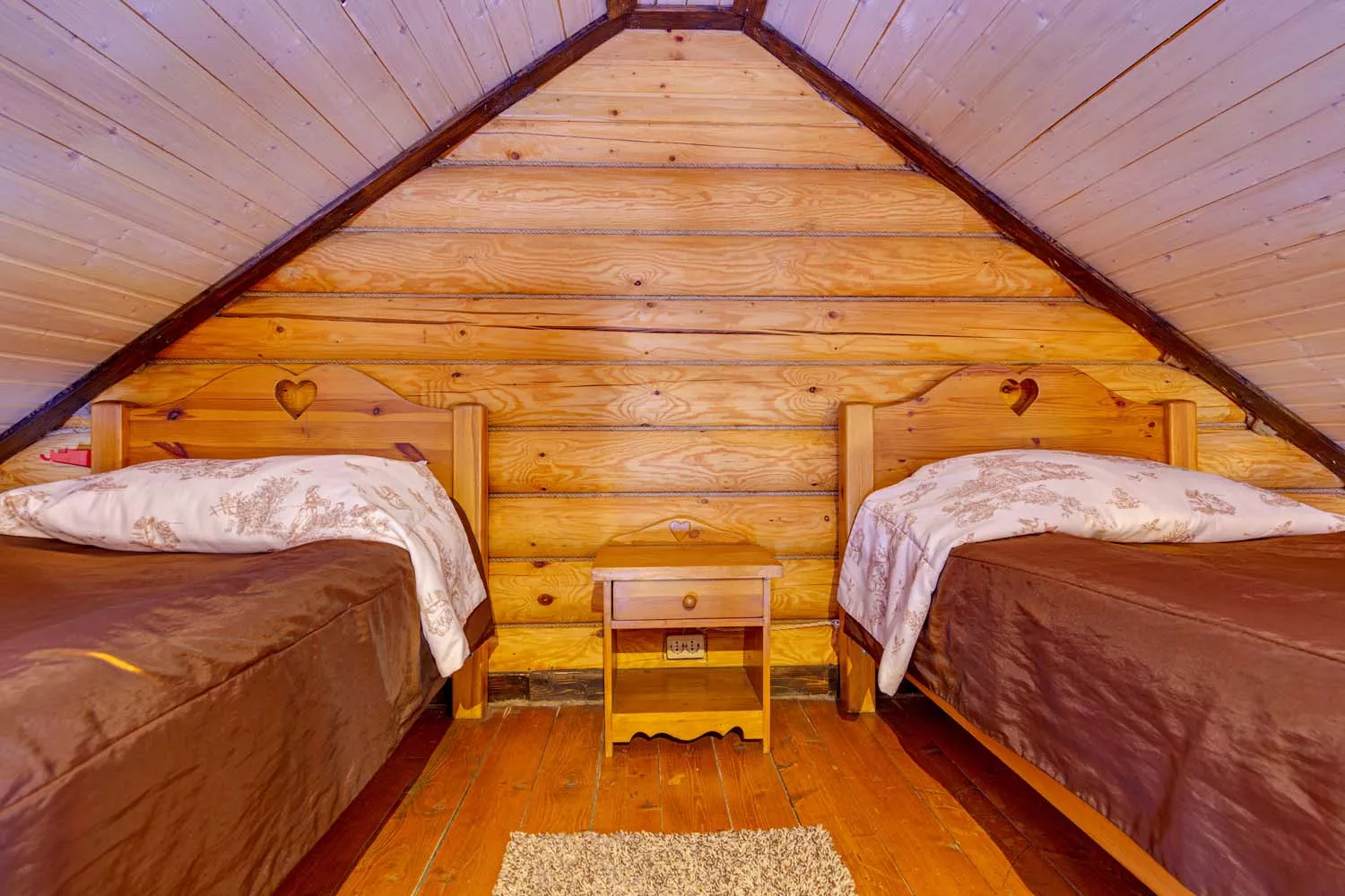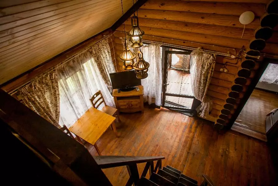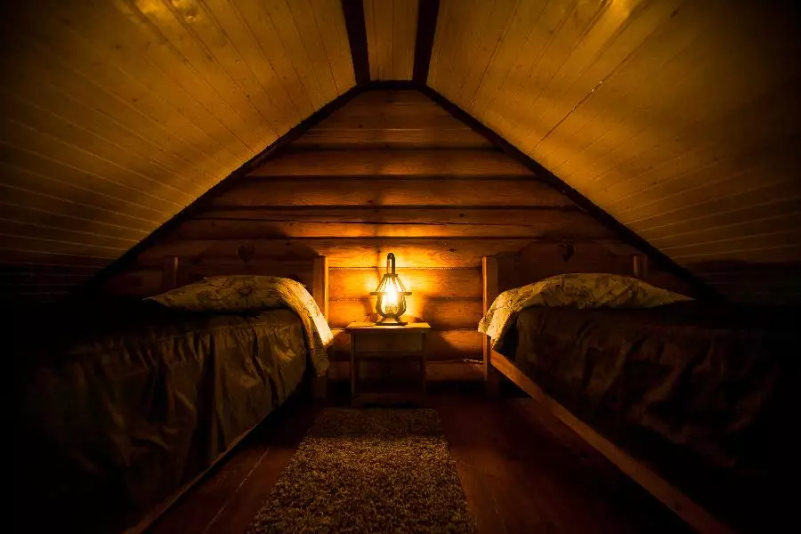 温馨的两层别墅,面积为30平方米,可容纳最多4人入住。一楼设有客厅和一张双人床。别墅的二楼设计为一个小型室内阳台。阁楼上有两张单人床。