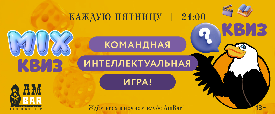 Мы знаем, как сделать ваши выходные незабываемыми! В ночном клубе Амбар каждую пятницу и субботу проходят интерактивные игры, квизы и караоке батлы! А каждую последнюю субботу месяца – зажигательные вечеринки с живыми выступлениями артистов и сетами от лучших диджеев.