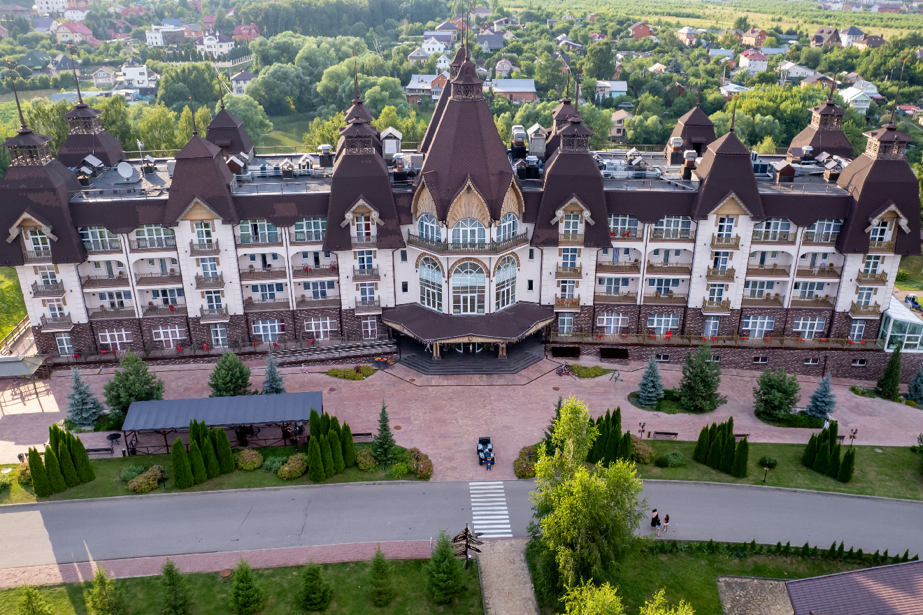 Величественно возвышаясь над окрестностями, он поражает масштабом и изяществом архитектурного исполнения. Грандиозное здание с утончёнными башенками словно сошло со страниц исторических романов. Его гармоничные линии и декоративные элементы создают неповторимый силуэт, ставший главным украшением комплекса. Из панорамных окон открываются живописные виды на окружающие ландшафты. Монументальность постройки сочетается с элегантной классикой и современным комфортом. Главный корпус открывает двери в мир изысканного отдыха — выберите номер и наслаждайтесь уютом в атмосфере природы и красоты.