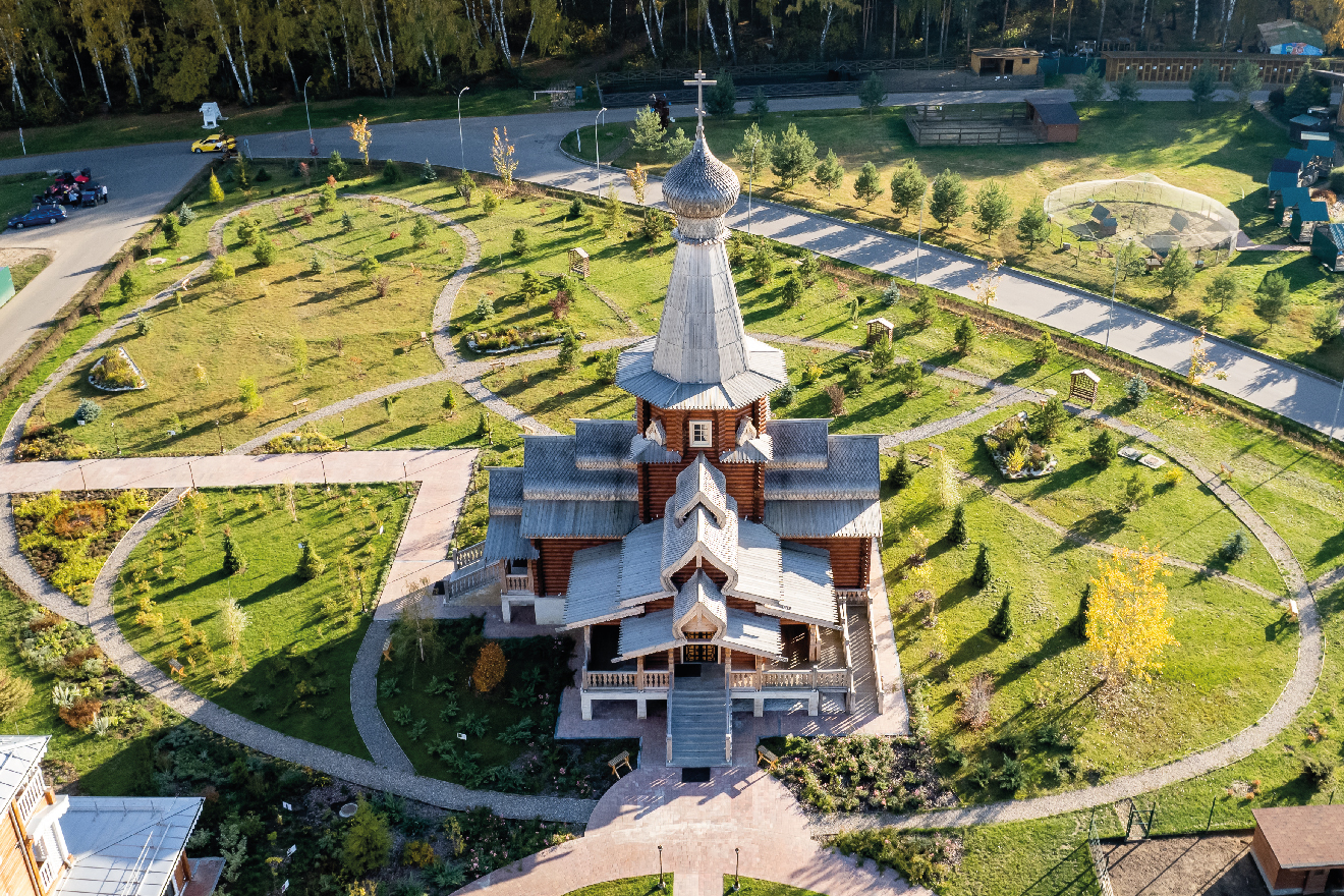 Храм-часовня во имя преподобного Сергия Радонежского Храм-часовня во имя преподобного Сергия Радонежского, расположенная на территории парк-отеля «Орловский», воплощает духовное наследие и архитектурные традиции Руси. Её облик выполнен в лучших канонах православного зодчества — с изящным шатровым завершением, деревянными деталями и гармоничными пропорциями. Построенная с благоговением и вниманием к деталям, часовня создаёт атмосферу уединения и покоя. Здесь гости могут прикоснуться к святыне, помолиться и ощутить душевное равновесие, наполняясь светом веры и спокойствием природы.
